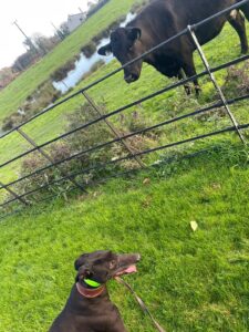 She’s a nice friendly girl, doesn’t pull on the lead. If she sees an open gate she will head out it but not in a bold way just likes to go for a run! She will run back into her own kennel herself and is quiet in her kennel. Likes her food. She prob wouldn’t like an apartment but she’s not crazy or anything.