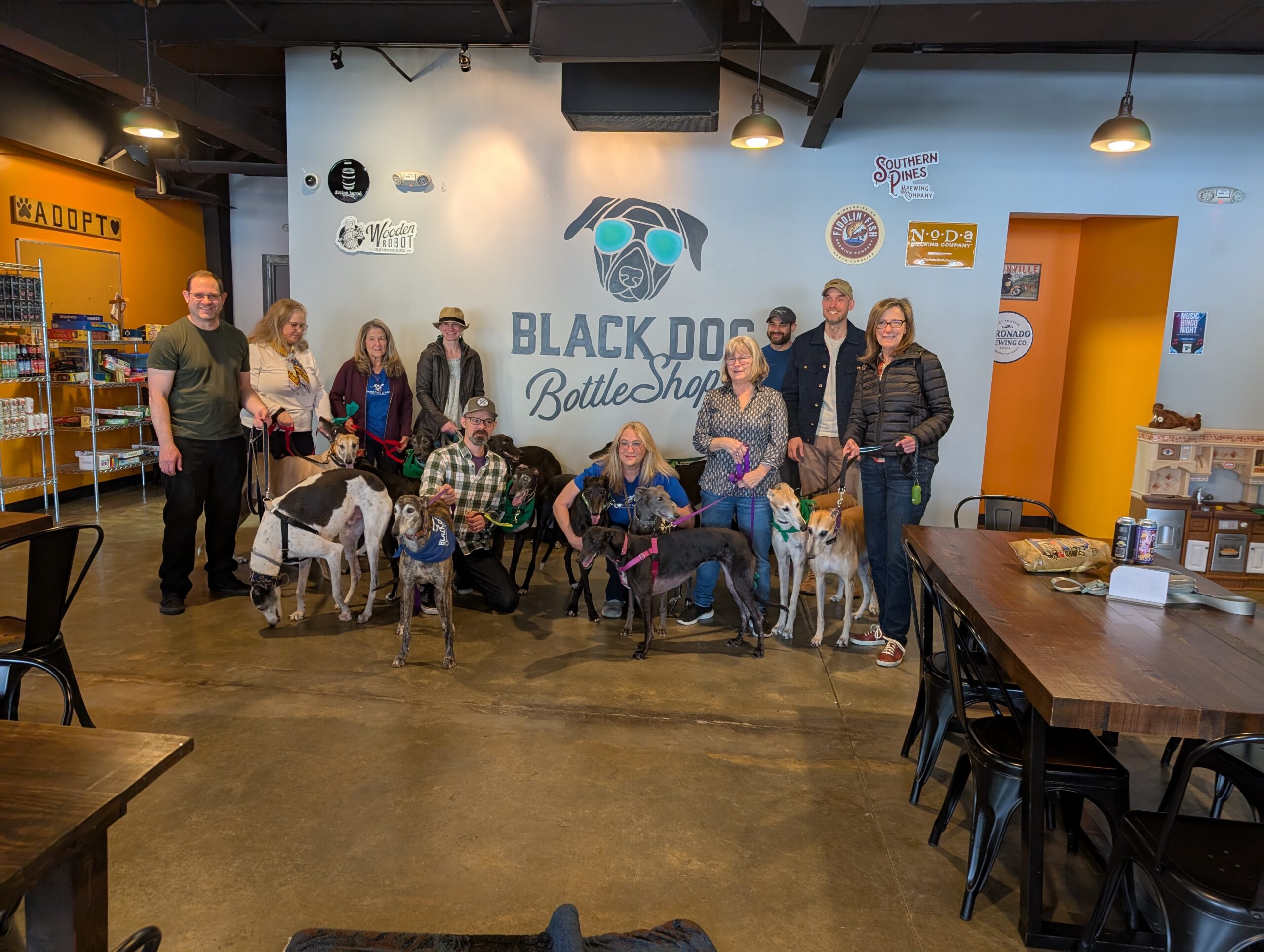 Join us for a meet and greet with Greyhounds and friends at the Black Dog Bottle Shop in Holly Springs